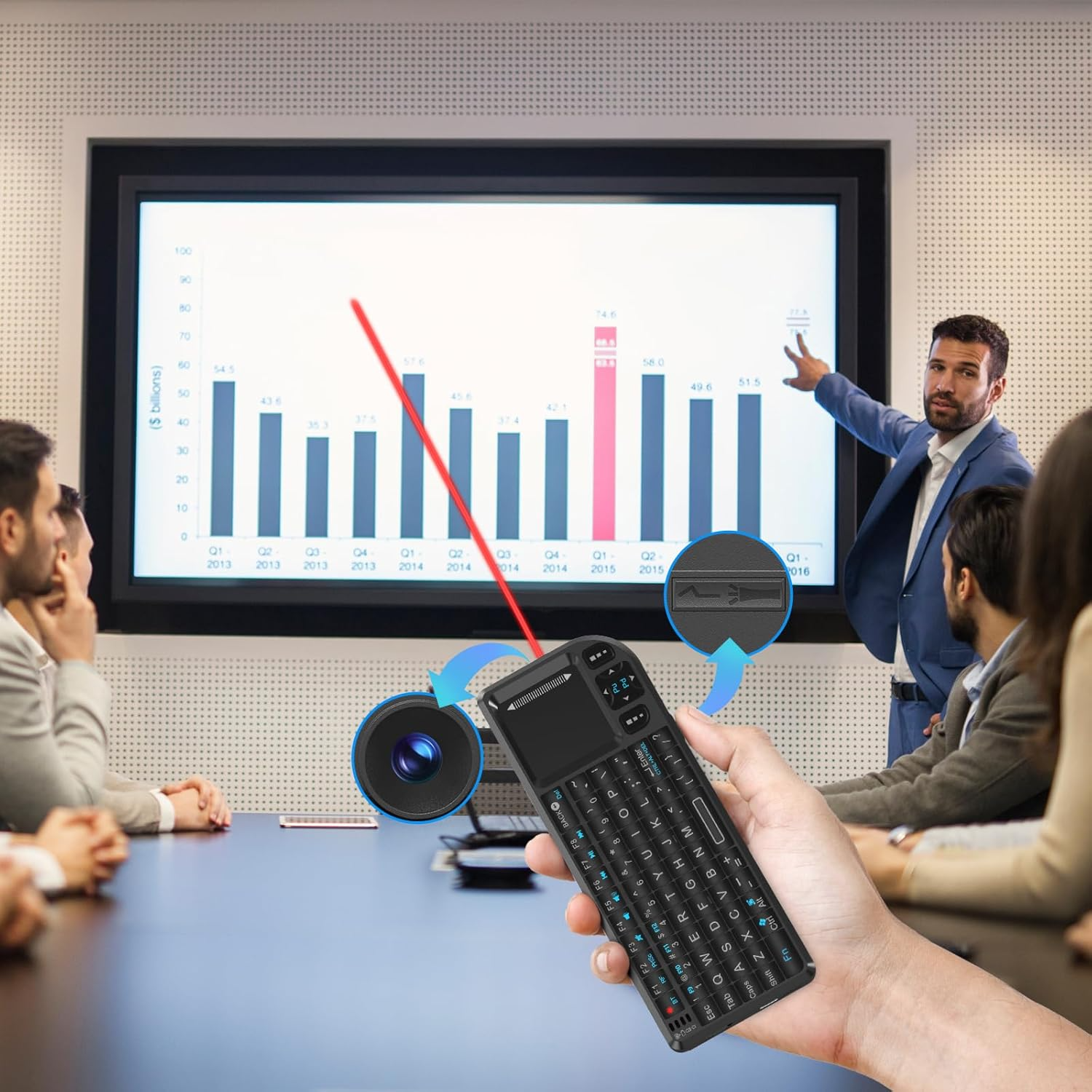 This compact keyboard combines wireless convenience with full-function versatility. Whether you’re browsing the web, streaming movies, or presenting slides, it brings total control to your hands — no bulky keyboard or mouse needed.