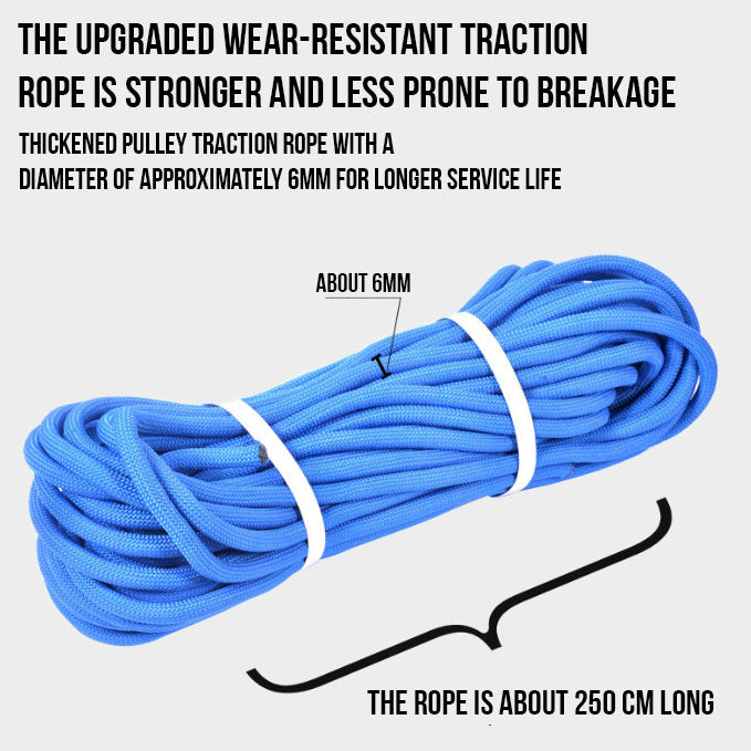 Durable rope, silent pulley, and soft grips deliver comfortable training every time.