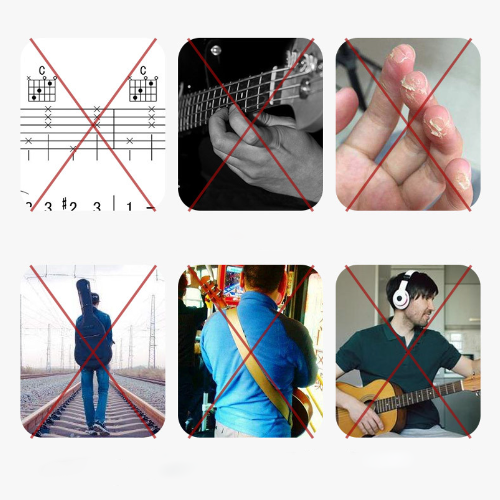 Avoid finger pain, bulky guitars, and noisy practice sessions. Learn guitar effortlessly with compact convenience and quick chord displays.