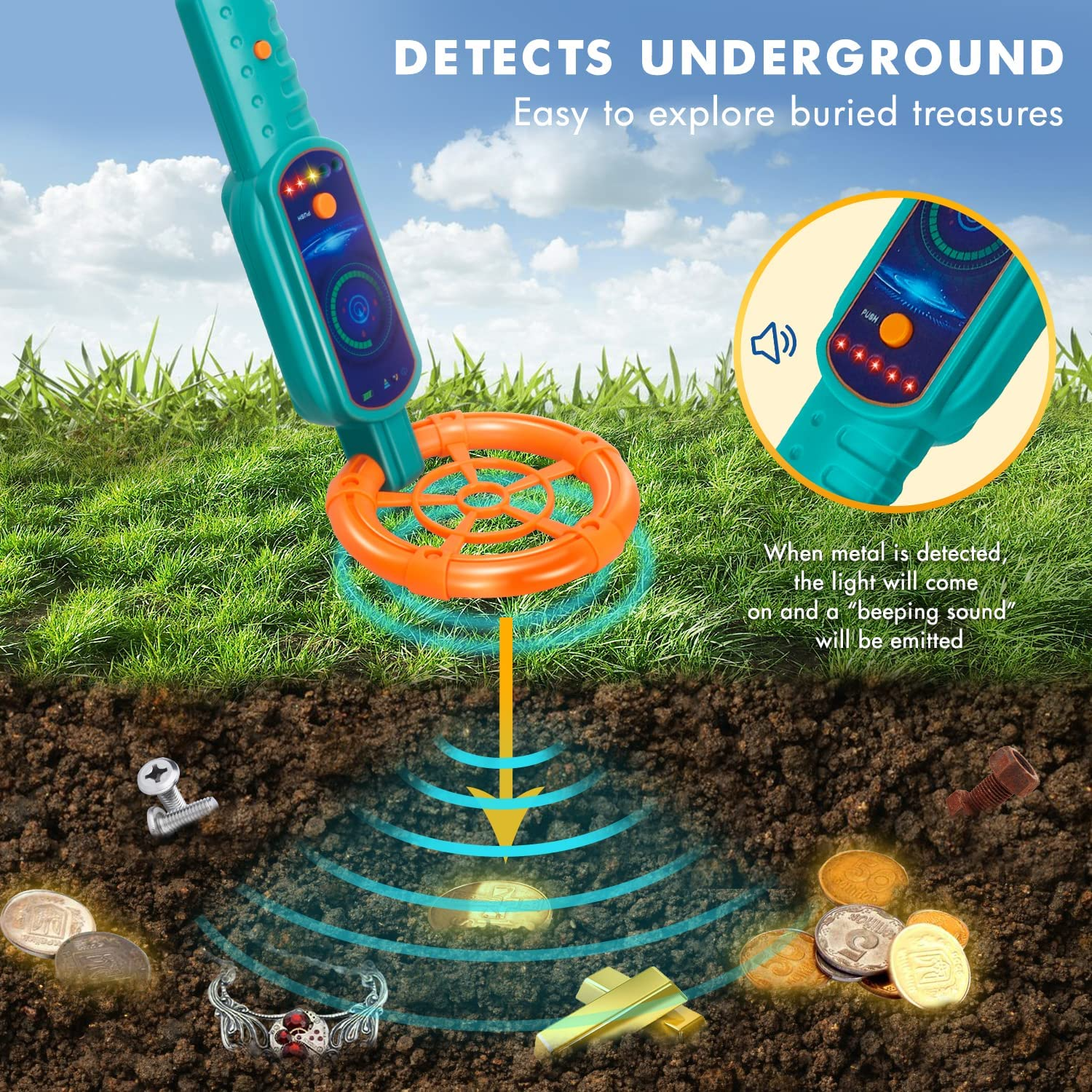 This detector motivates kids to get outside and explore nature. It turns parks, gardens, and beaches into exciting treasure hunting zones.