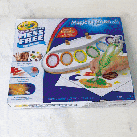 1 light-up brush, 6 color wells, and 18 blank Color Wonder pages.