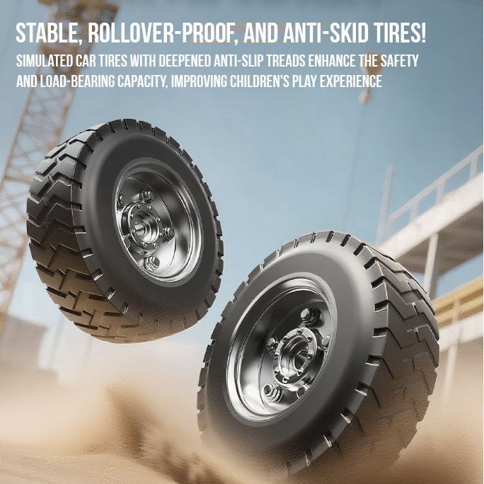 Textured tires provide stable driving on most surfaces, keeping play smooth and safe.