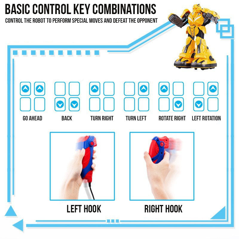 Move your hands to control punches, blocks, and spins for a lifelike battle experience. Challenge your friends to an intense one-on-one fight using 2.4GHz remotes with zero interference.